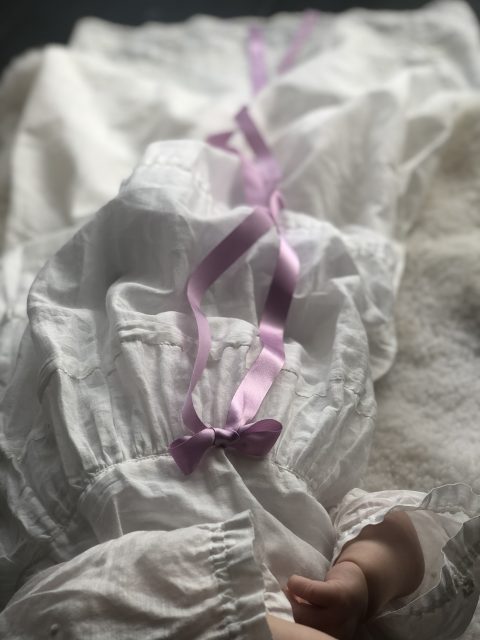 Nu har dopklänningen legat undanstoppad sedan 1986. Bomullstyget hade gulnat och den var mycket skrynklig. För att klänningen ska kunna användas igen behöver den en våtrengöring och bomullstyget slätas.